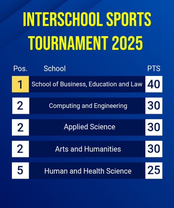Next year’s Interschool Sports Tournament promises to be even bigger and better. Will the School of Business, Education and Law be able to hold onto their crown? Or will we have a new champion?